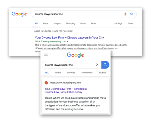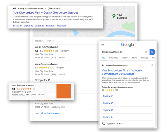 Utilizing Facebook’s advertising platform, we can tap into many different audiences of people on Facebook and Instagram. Social Media advertising has the unique ability to not only target the right Divorce Law customer in the area of your choice, but it also allows social interaction between a customer and the Divorce Law Firm. People can comment, like, and share your post with other friends and family. Facebook also has the ability to use video and image ads to engage potential customers. Your customers are Facebook and Instagram, and we’ll use these platforms to reach them directly with your messaging.